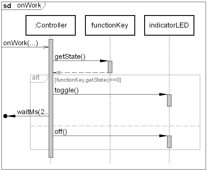 Controller::onWork():void// continuous event from the Mainloop // WENN Funktionstaste gedrückt DANN // AnzeigeLED an // SONST // AnzeigeLED aus