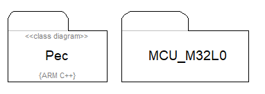 Weisen Sie dem Diagramm das Treiberpaket für den konkreten Controller MCU_MM32L0 zu. Sie finden dieses Paket über den Navigator (UML-Pakete) oder über die Suchfunktion im Explorer.