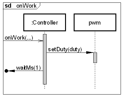 Controller::onWork():voidduty++; if (duty>=1000) { duty=0; } pwm.setDuty(duty); waitMs(1);