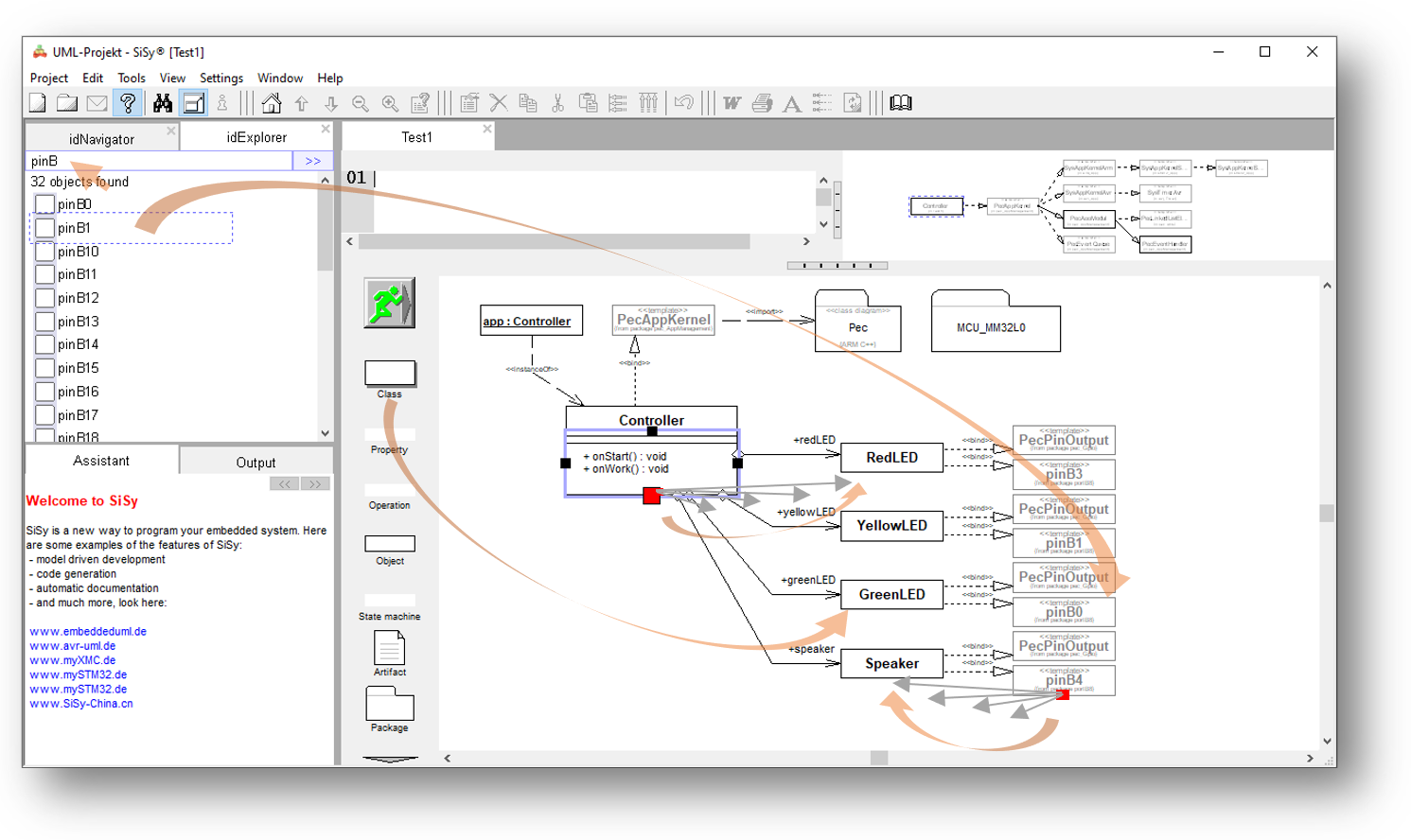 - gewünschte Klasse LED im Navigator/Explorer suchen und ins Diagramm ziehen